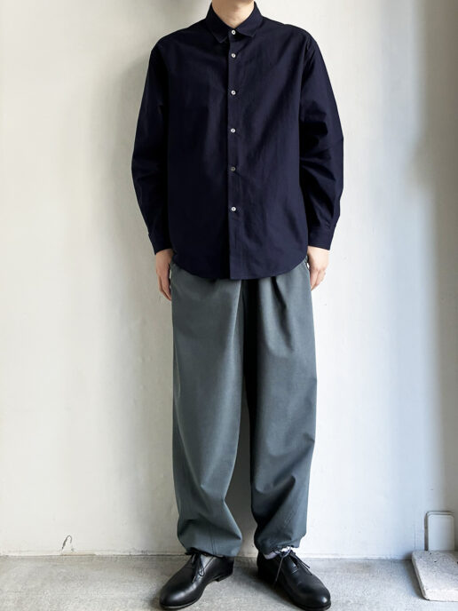 リラックスしたシルエットでシンプルなデザインにしたレギュラーカラーのシャツは[LAMOND]定番のデザイン。