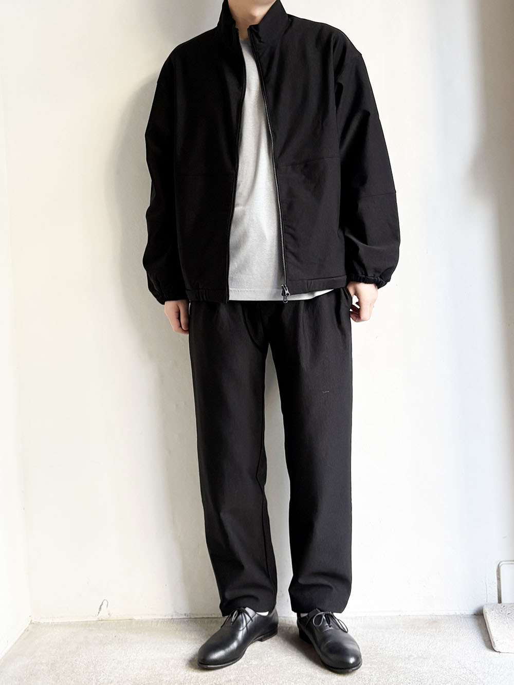 同素材のスタンドブルゾンとのSet up着用もおすすめです。