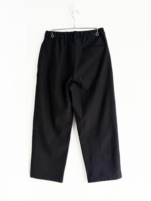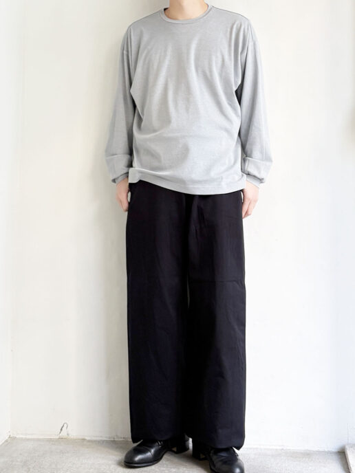 同じ素材にて二つのシルエットの展開、こちらははゆったりとしたワイドシルエットです。