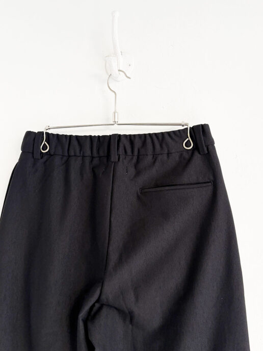 シルエットは1タック入りでヒップとワタリに程よいゆとりを持たせた、ストレート寄りのセミワイドライン。