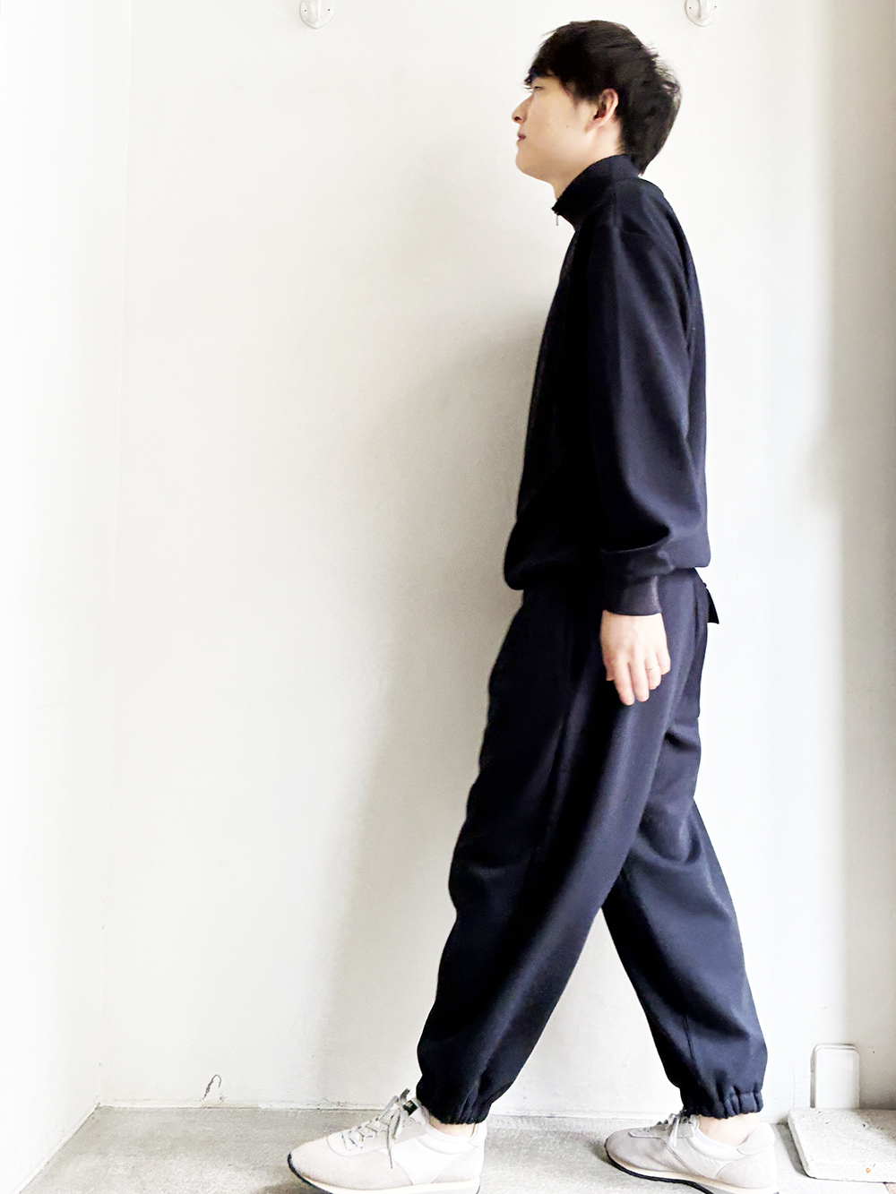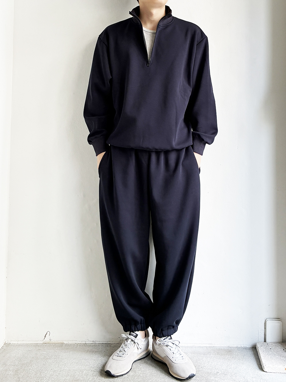ゆったりとしたサイズ感で、着用することができるハーフジップハイネックプルオーバーです。