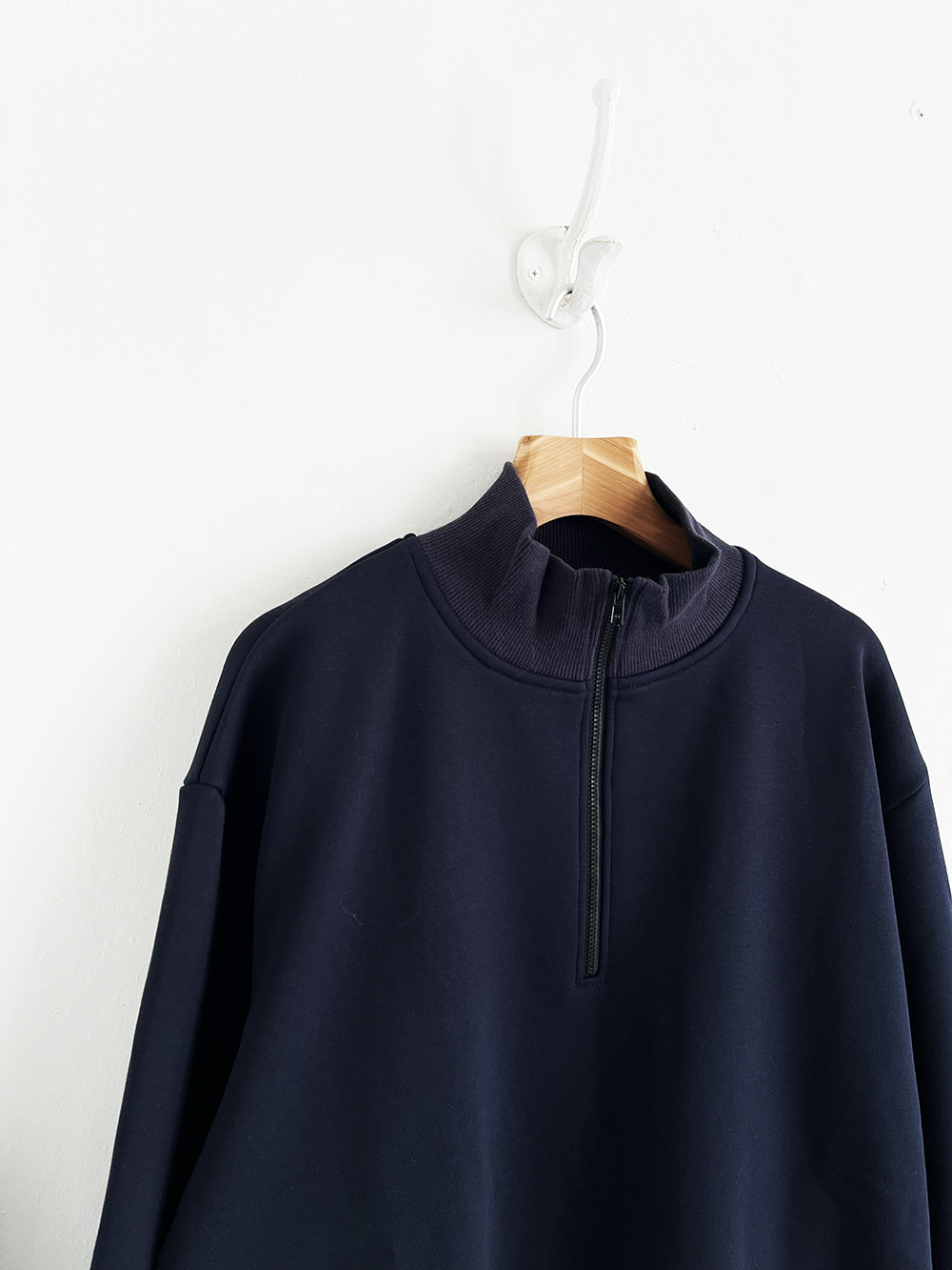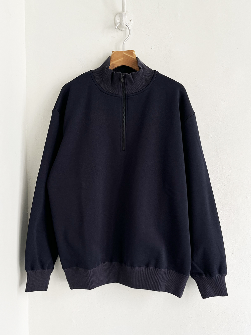 ゆったりとしたサイズ感で、着用することができるハーフジップハイネックプルオーバーです。
