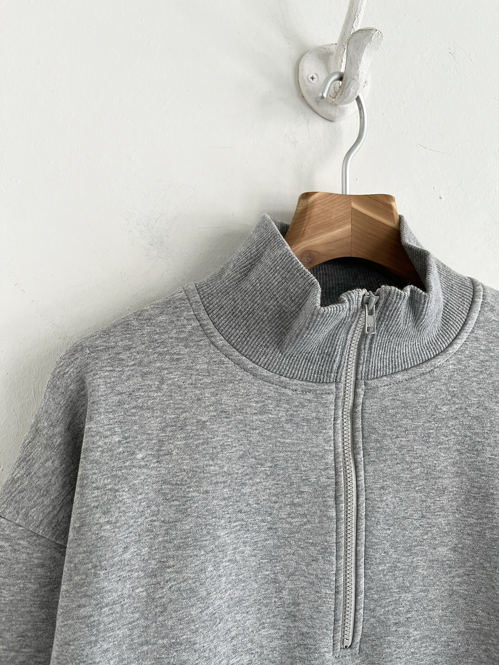 ゆったりとしたサイズ感で、着用することができるハーフジップハイネックプルオーバーです。