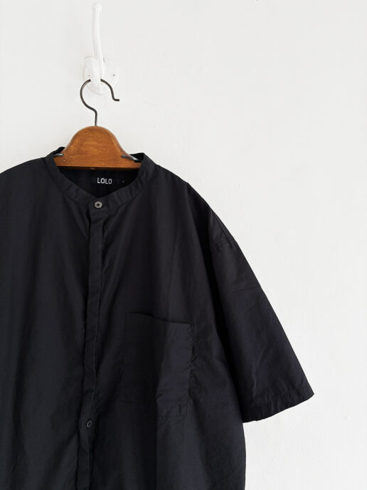 清潔感があり優しい雰囲気の、シンプルで着やすいスタンドカラーシャツです。