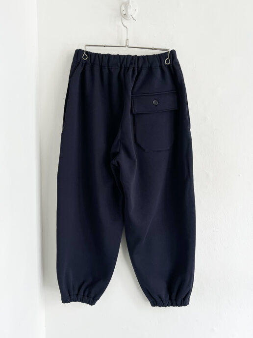 ゆったりとワイドで裾のリブでまとまるジョガーパンツ型。