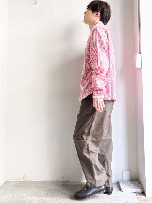 シルエットは、肩が少し落ちて身幅はゆったりしたサイズ感です。