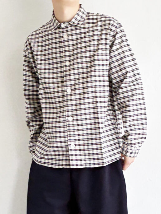 シルエットは、肩が少し落ちて身幅はゆったりしたサイズ感です。