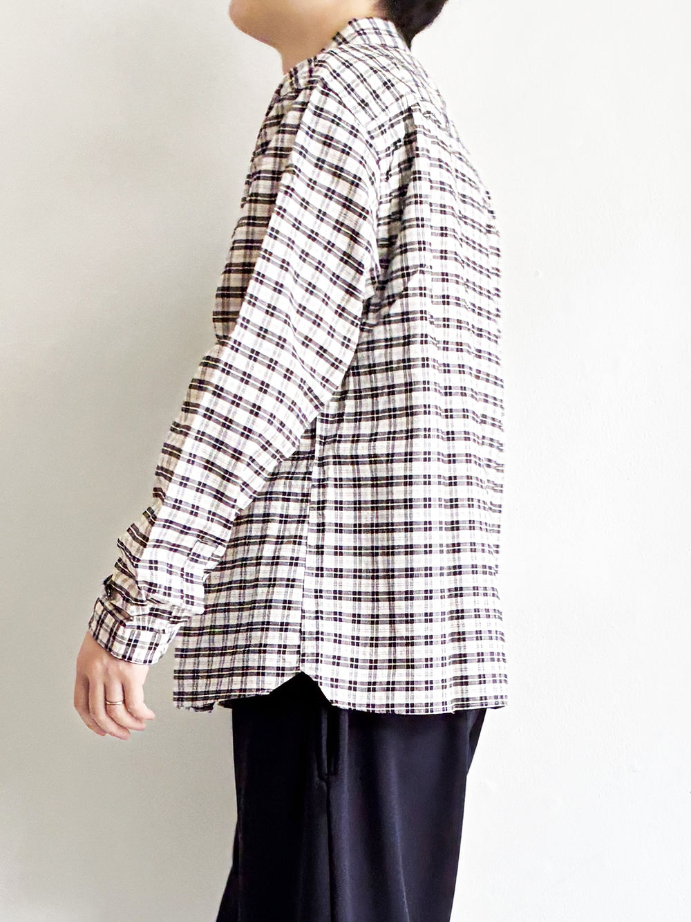 シルエットは、肩が少し落ちて身幅はゆったりしたサイズ感です。