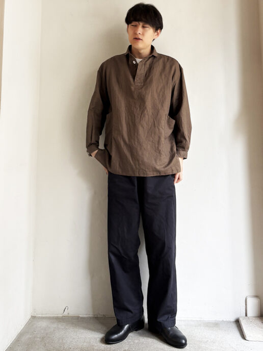 タテに綿糸・ヨコに麻糸で織り上げた生地はリネンらしいスラブ感とコットンのやわらかさがプラス。