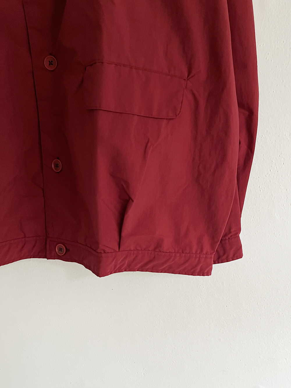 薄手平織り地ですが生地目が密で耐久性も高くアウター素材として機能面で長所が多いテキスタイルです。