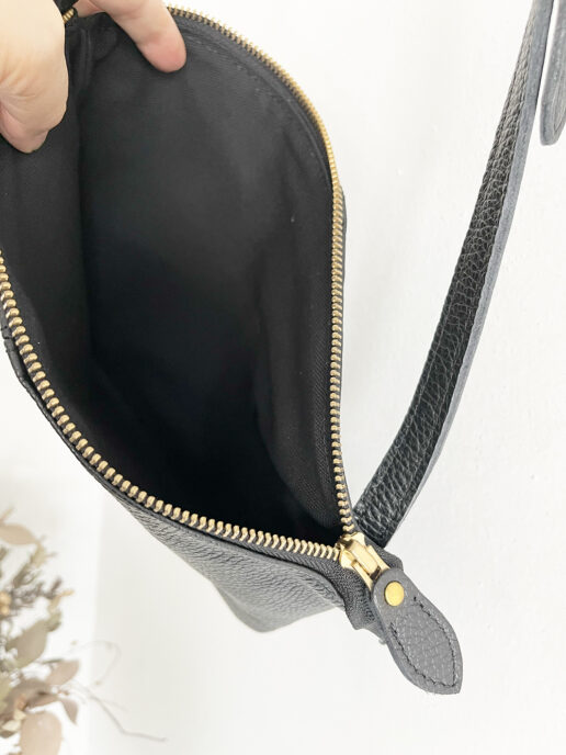 無駄な装飾のないすっきりとしたデザインで軽くてしなやかな革を使用したレザーポシェットです。