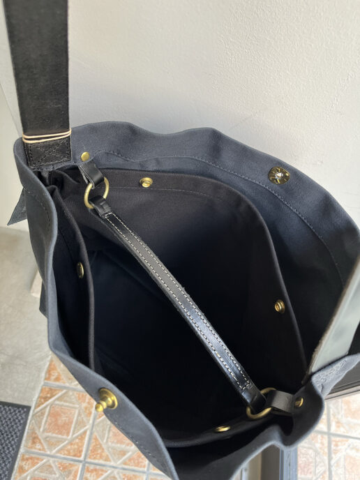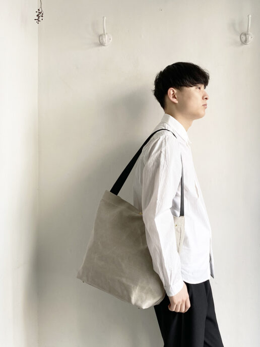 麻帆布の持つ風合いとレザーの相性がとても上品に感じられ、経年変化も楽しむこともできます。