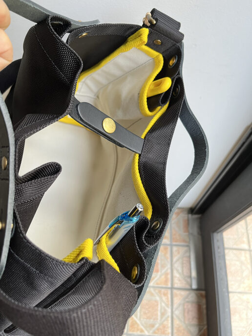 内側には鮮やかなイエローカラーのパイピングが施され、さりげなくオシャレなアクセントをプラス。
