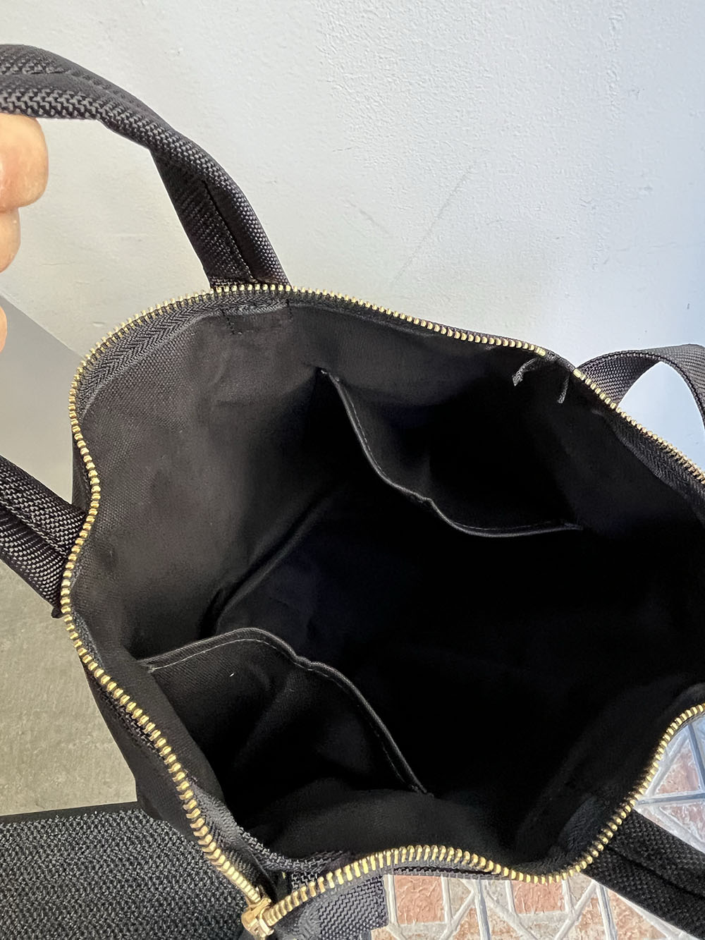 内張には丁寧にコットン生地が張り巡らせ、仕分けポケットもサイドに2つあります。