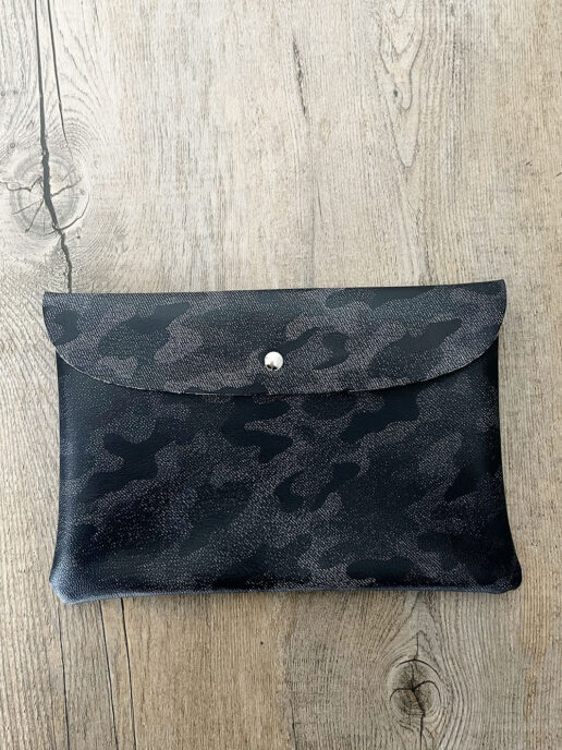 無駄なものを削ぎ落したミニマルなデザインのレザーポーチ。