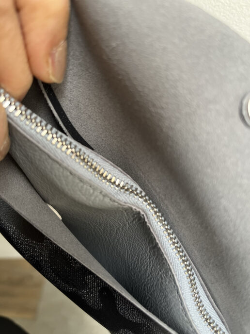 中は、ファスナーポケットを挟んで2つのポケットが付いており、小物を分けて収納するのに便利です。