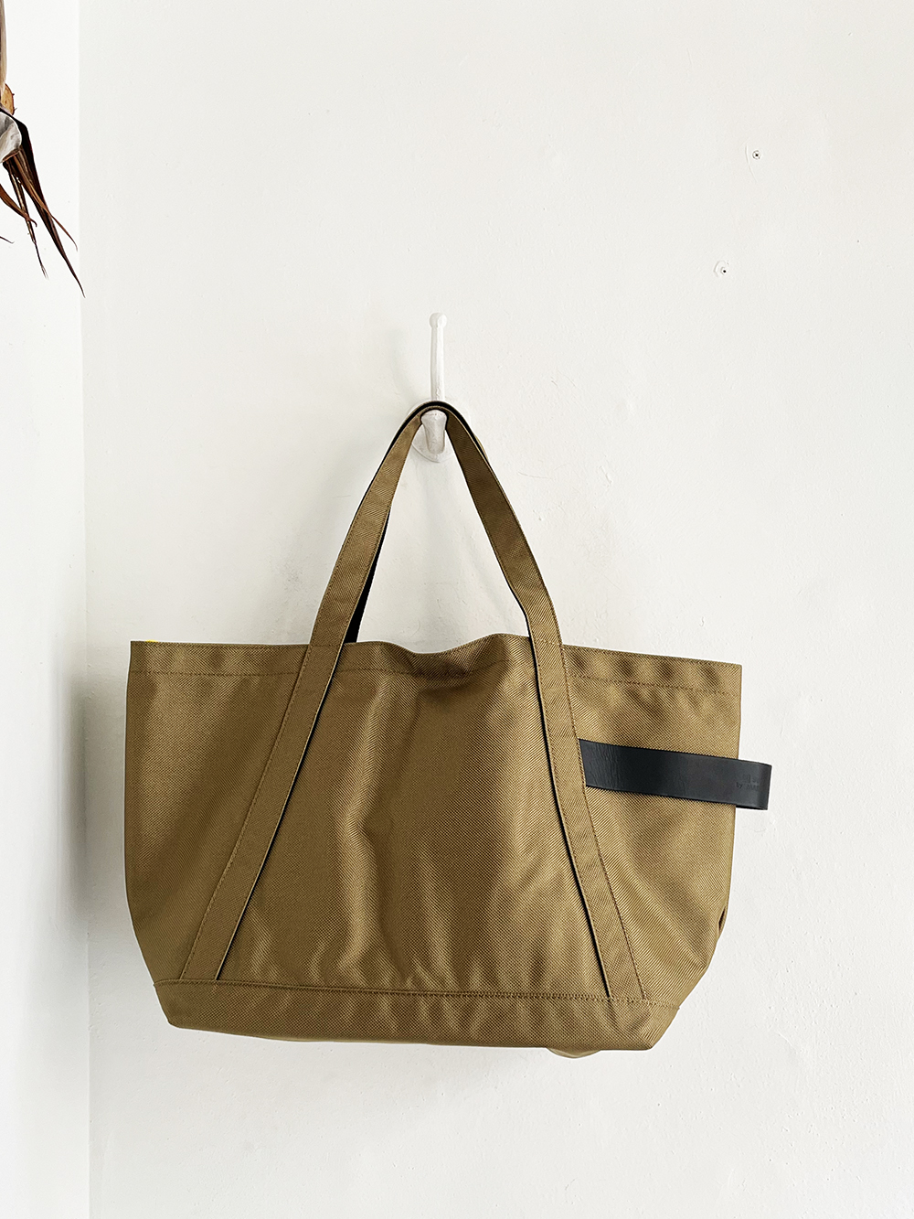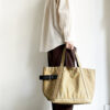 持ち手の長さは肩掛けでも手持ちでも使え、裏側にはコットンテープで持ちやすく補強。