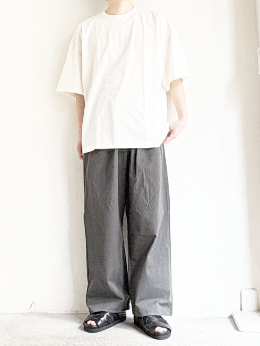 定番リラックスパンツのウエストサイズをそのままに、腰周りから裾までのシルエットをワンサイズ大きくしました。