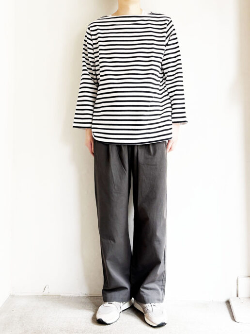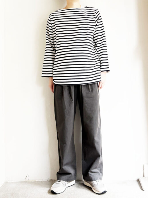 着用モデル:身長172cm 体重58kg ボーダー着用時はサイズ2,それ以外はサイズ4着用 。