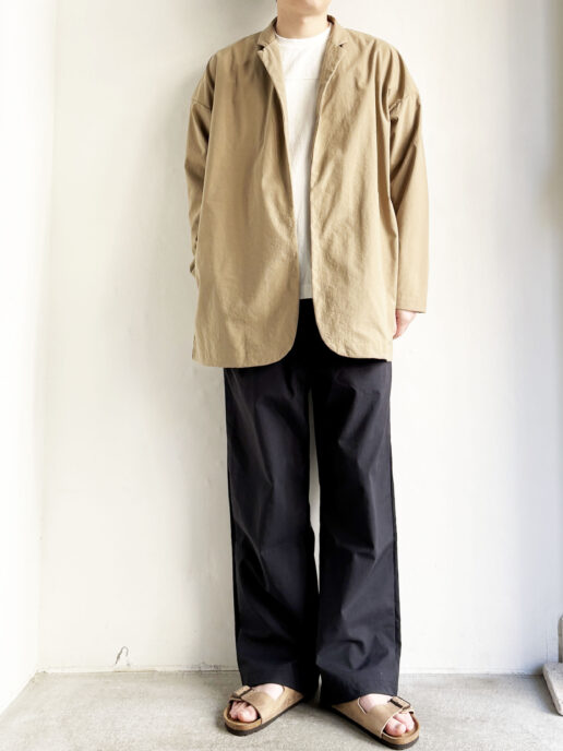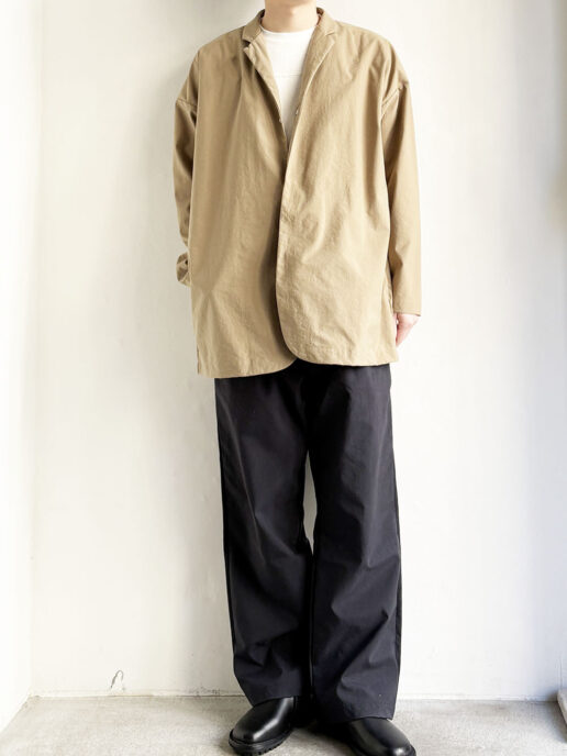 程よいシャカシャカ感と綿のような雰囲気を併せ持ったコートです。