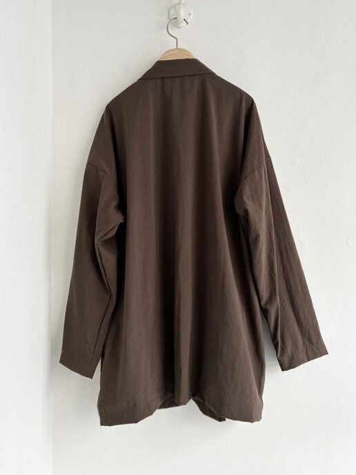 最低限の必要なステッチのみで縫製しており、1枚の生地を羽織ったような仕上がりにしています。