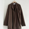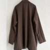 ボタンは一つだけの和の服、直線で切り取ったパーツを縫い合わせた平面構成を意識した商品になります。