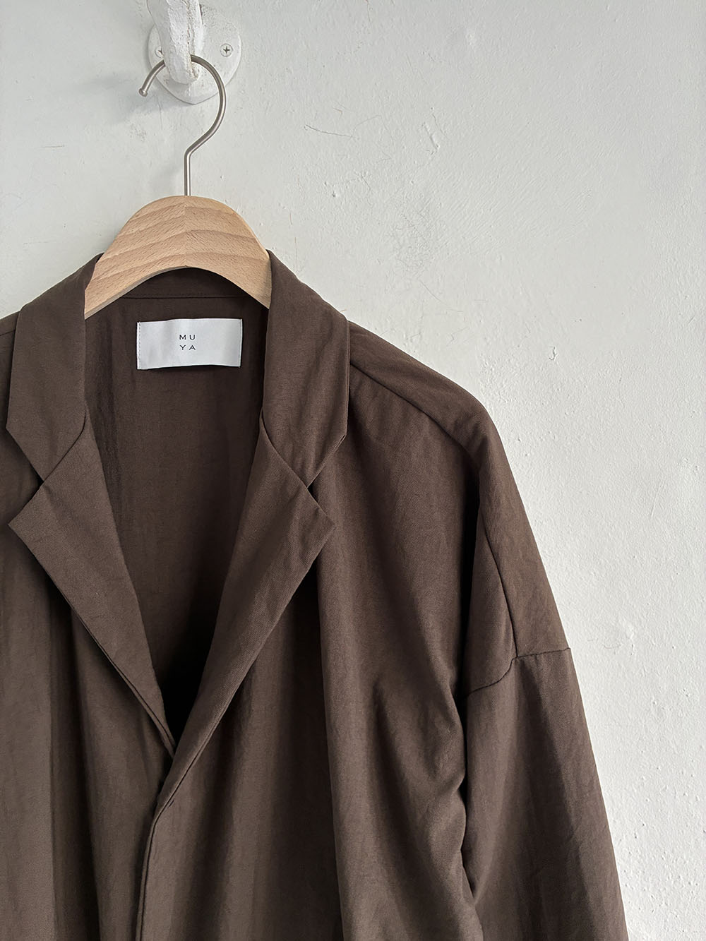 最低限の必要なステッチのみで縫製しており、1枚の生地を羽織ったような仕上がりにしています。