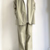 ボタンは一つだけの和の服、直線で切り取ったパーツを縫い合わせた平面構成を意識した商品になります。