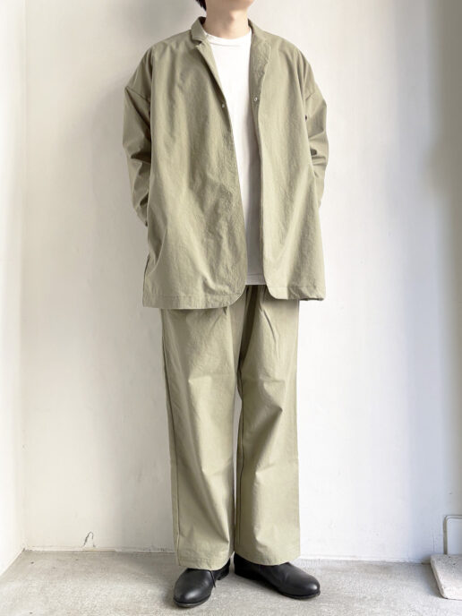 程よいシャカシャカ感と綿のような雰囲気を併せ持ったコートです。