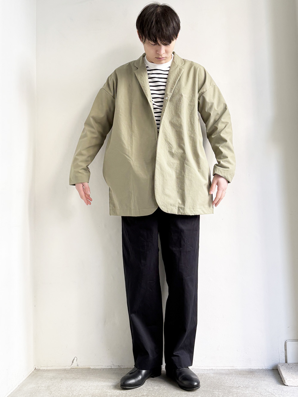 程よいシャカシャカ感と綿のような雰囲気を併せ持ったコートです。