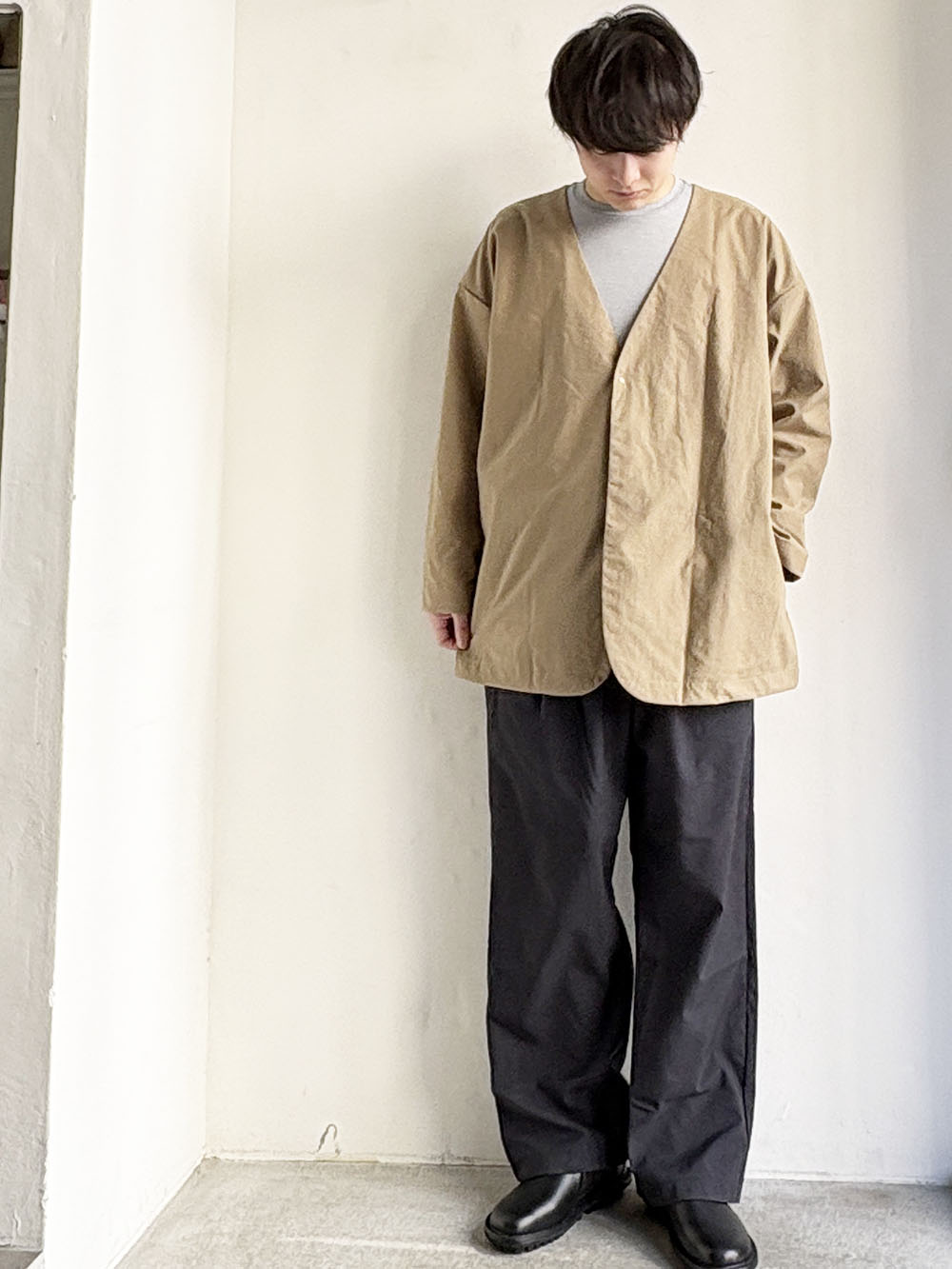 程よいシャカシャカ感と綿のような雰囲気を併せ持ったコートです。