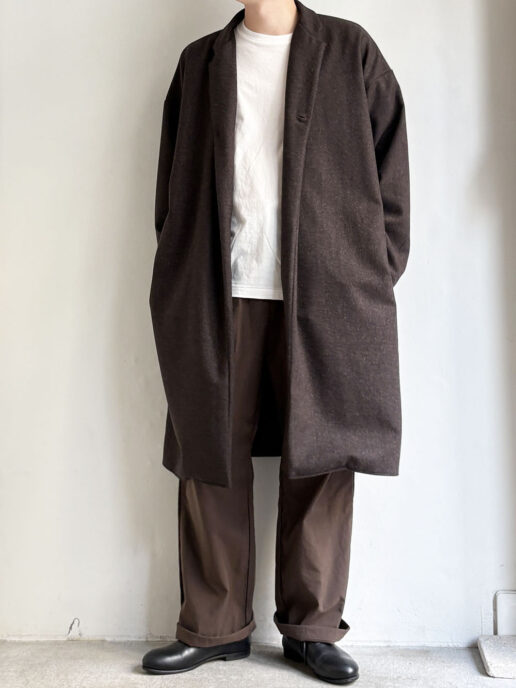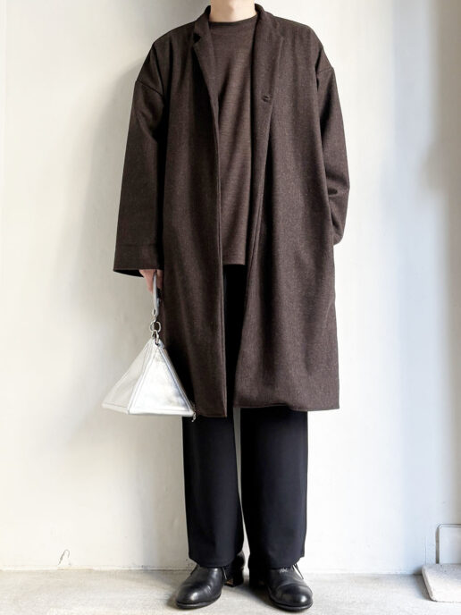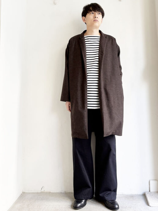 ゆったりとしたデザインは、中にニットやカーディガンなどで重ね着がしやすいです。