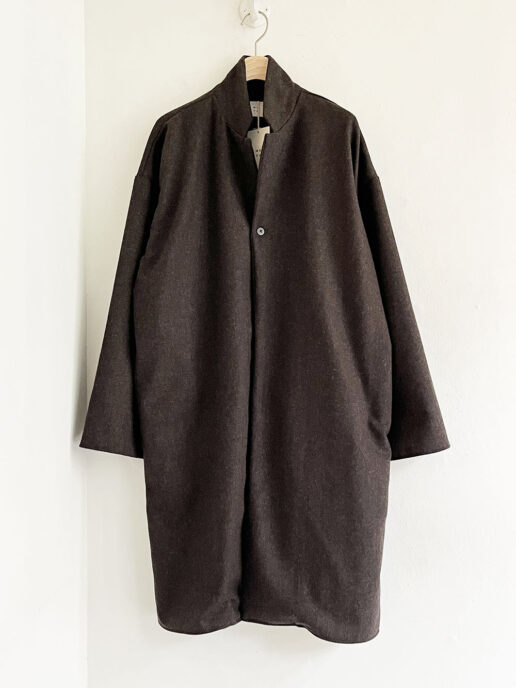 最低限の必要なステッチのみで縫製、1枚の生地を羽織ったような仕上がりです。