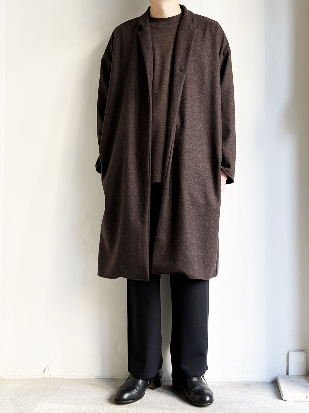 ゆったりとしたデザインは、中にニットやカーディガンなどで重ね着がしやすいです。