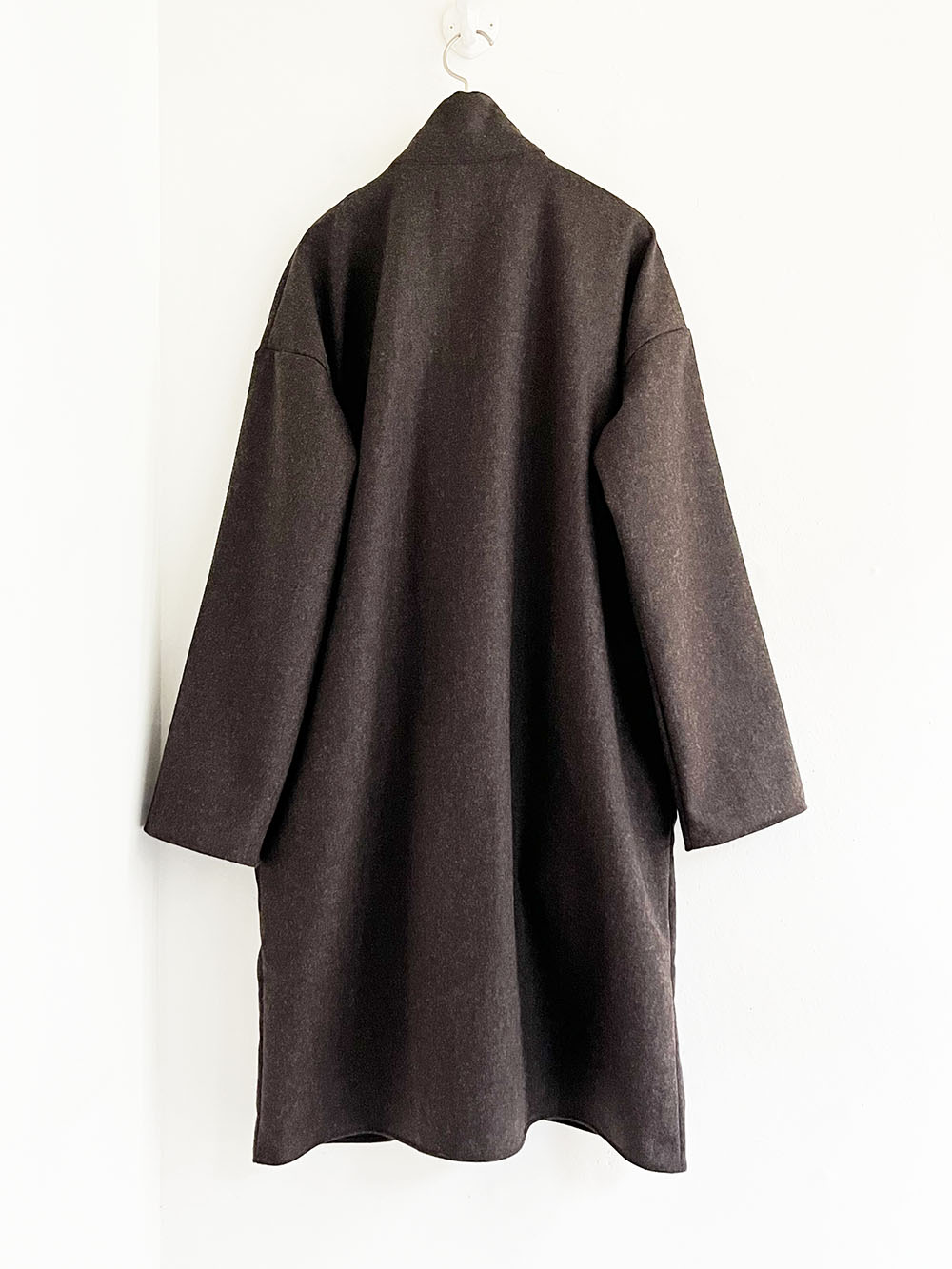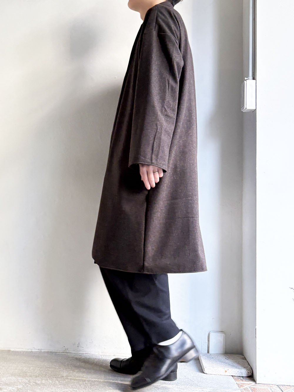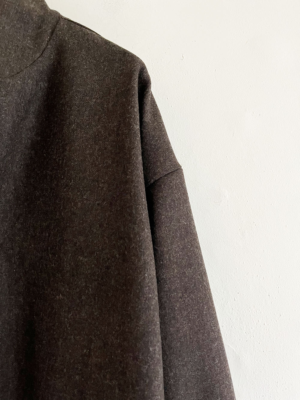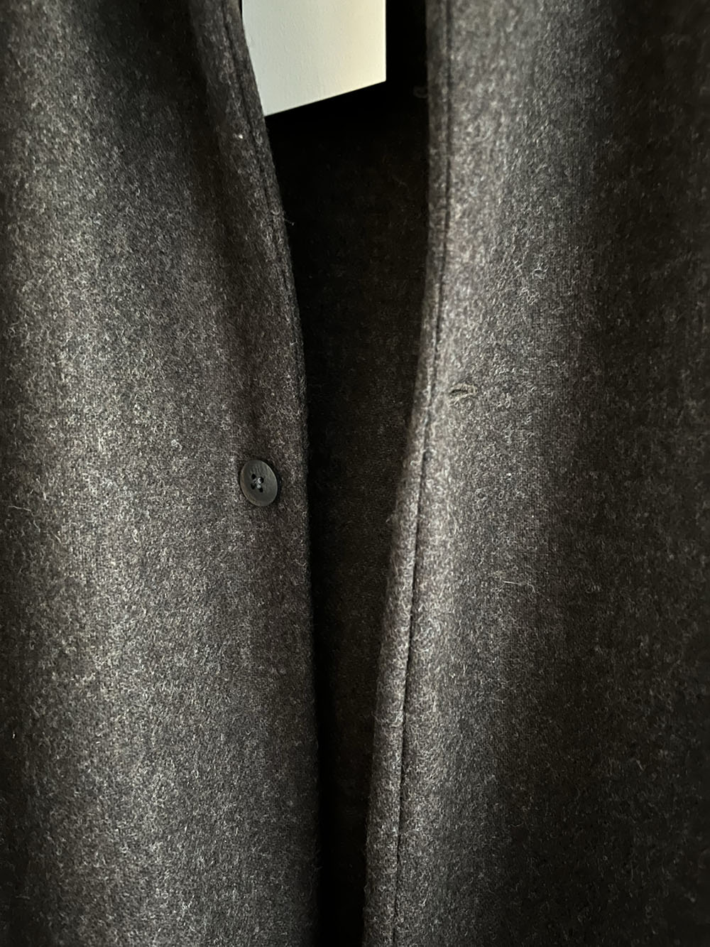 最低限の必要なステッチのみで縫製、1枚の生地を羽織ったような仕上がりです。