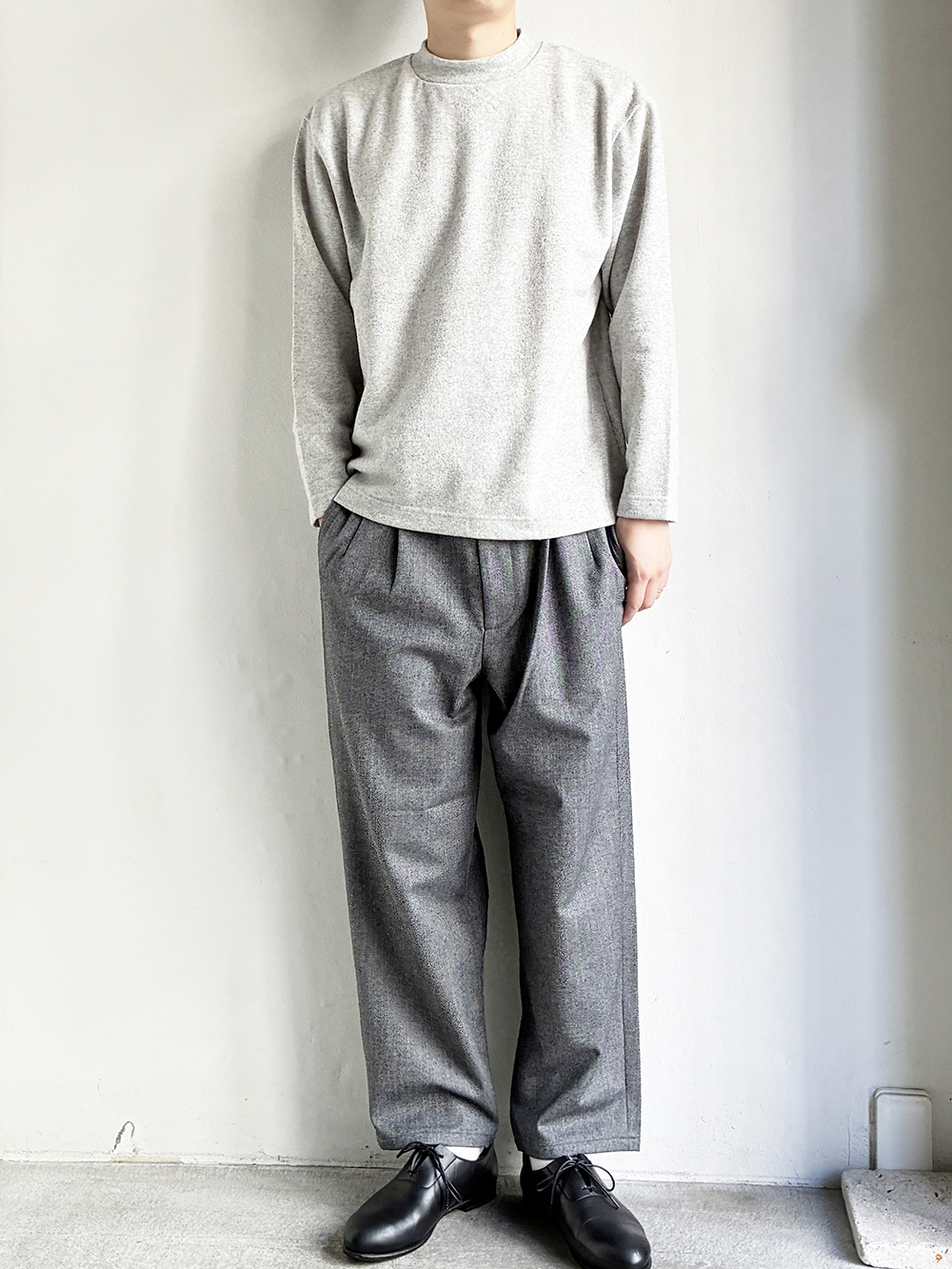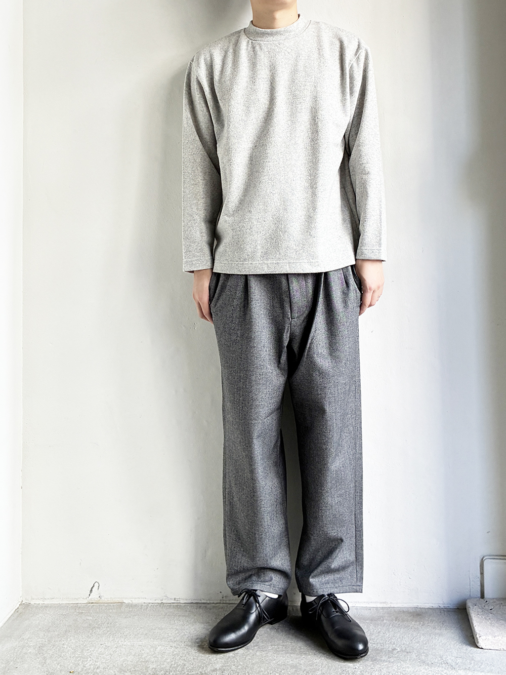 身頃・袖ともにゆとりを持たせた、リラックス感のあるシルエットです。