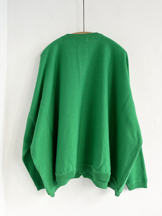 着丈のすっきりとしたワイドシルエットでこの一枚を纏うだけで様になる万能なニット。
