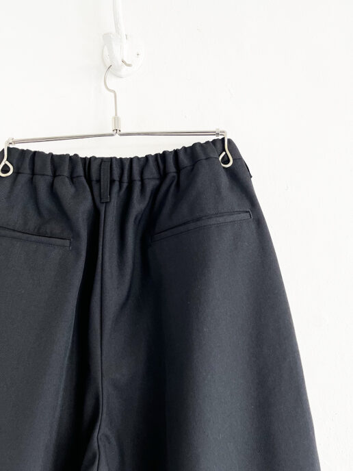 ワイドシルエットのトラウザーはユニフォーム等で使用されるウールギャバジン生地を使用。