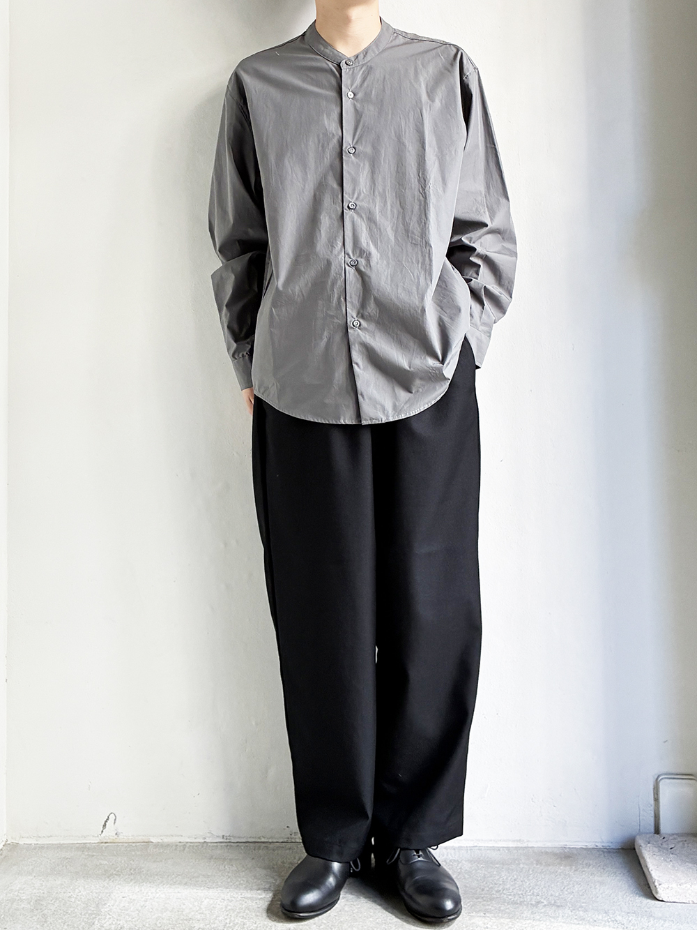 ワイドシルエットのトラウザーはユニフォーム等で使用されるウールギャバジン生地を使用。