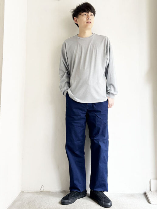 ジャストサイズでスッキリ、ワンサイズあげてゆったりとバランスがいいのでどちらもいけます。