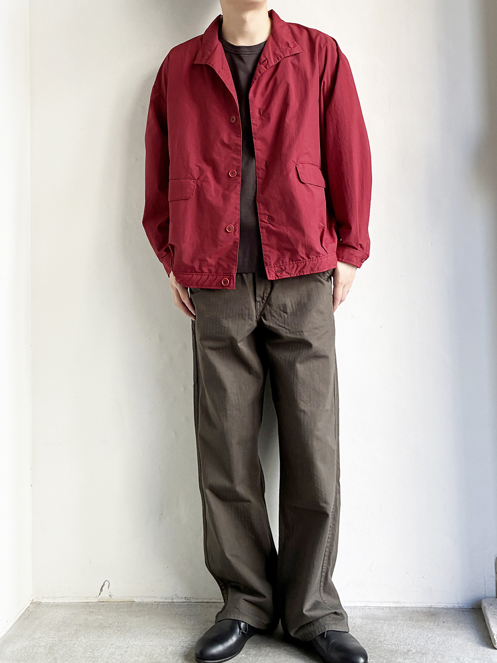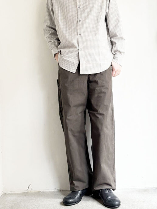 従来のフレンチワークパンツと比べ、やや厚めのコットンヘリンボーンツイル生地を採用。