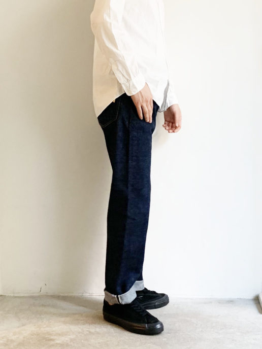 ワンウォッシュで体に馴染みやすく、穿き込む事で経年変化も楽しめる一本です。