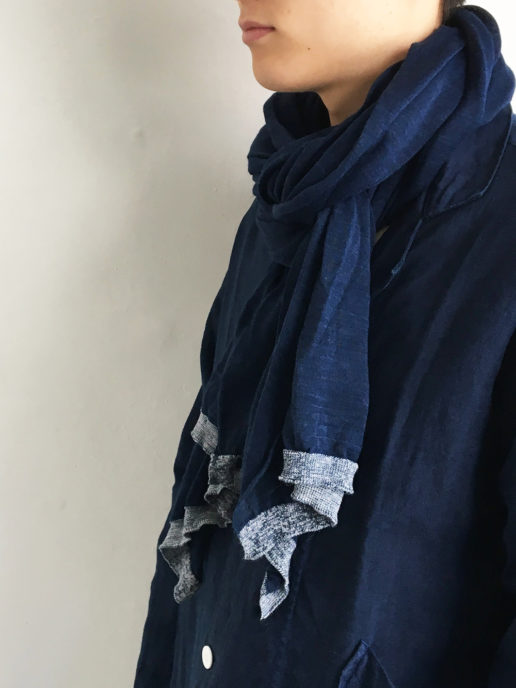 こちらはさらっとしたラミー素材を使用し、藍染めによる染色で仕上げたストールです。