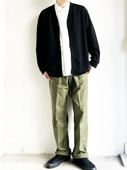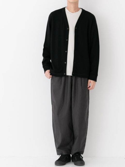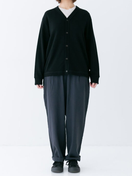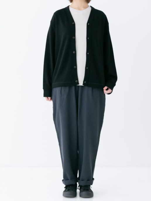 毛先が短く滑らかな肌触りのウール素材を使用したカーディガンです。