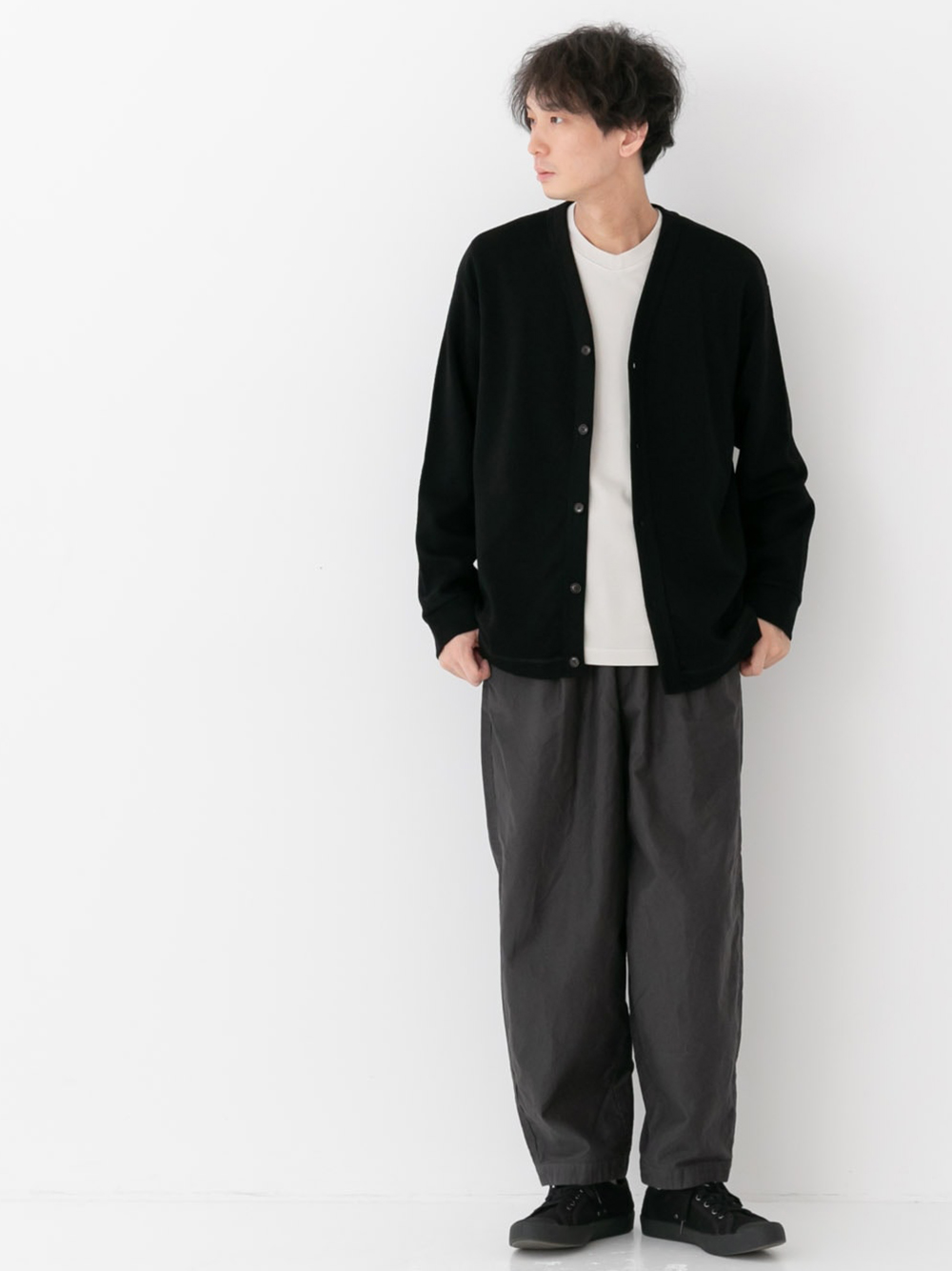 また、厚過ぎず薄過ぎない丁度良い厚みなので1枚でもコートの下のインナーにも着心地良く使えます。