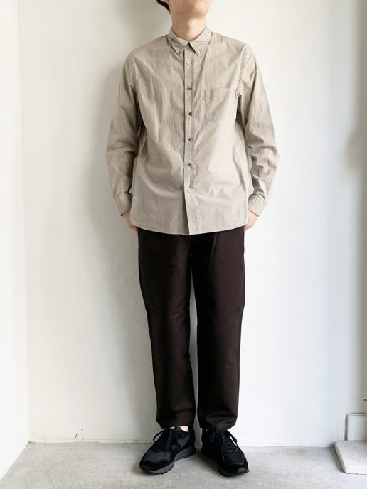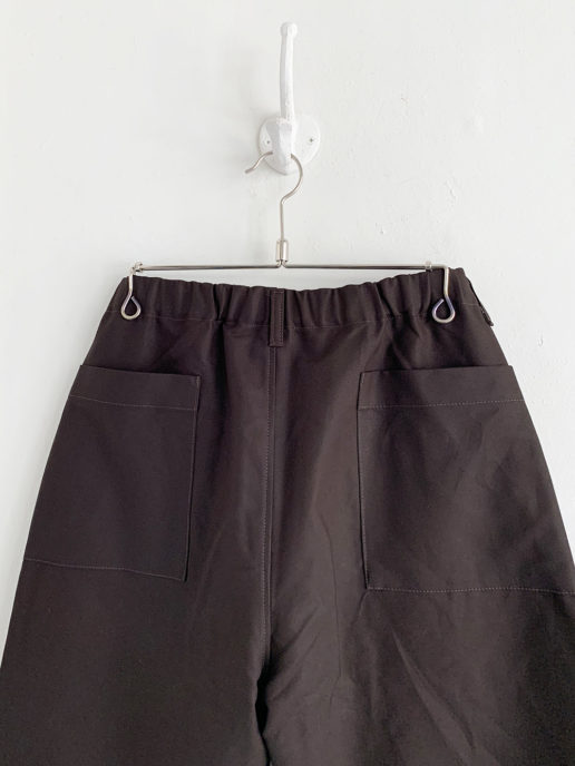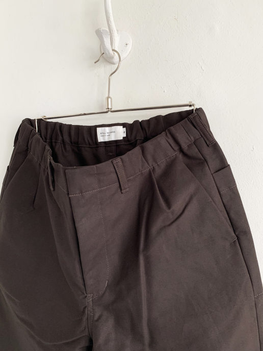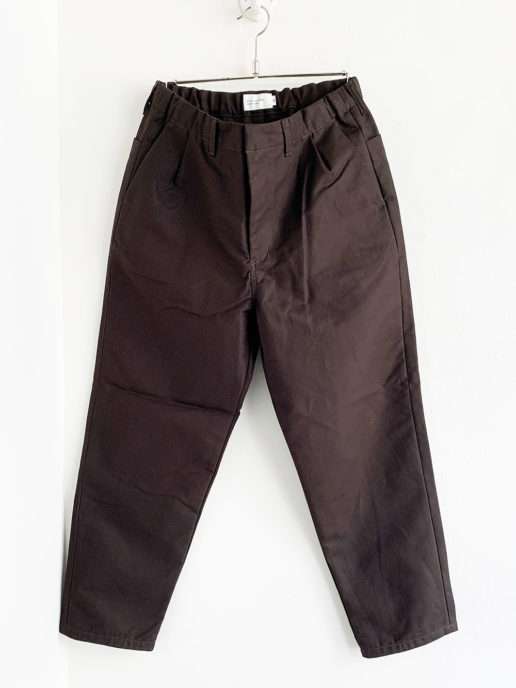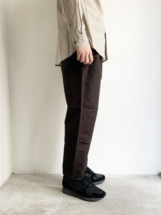 腰回りはタックをとり、わたりに少しゆとりをもたせ、裾にかけてゆるくテーパードをきかせたシルエット。