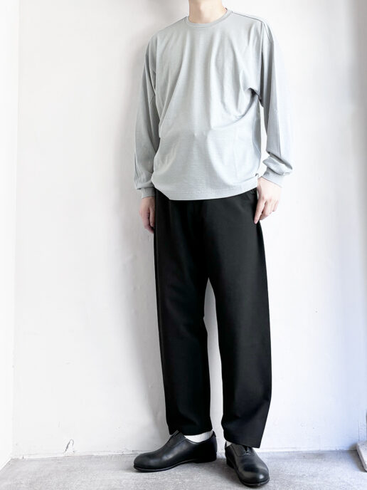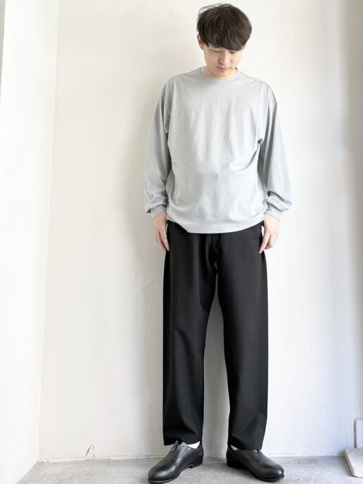 ゆったりとしたサイズ感ですがドレープ性のある生地によりビッグシルエットではなくリラックスした印象です。