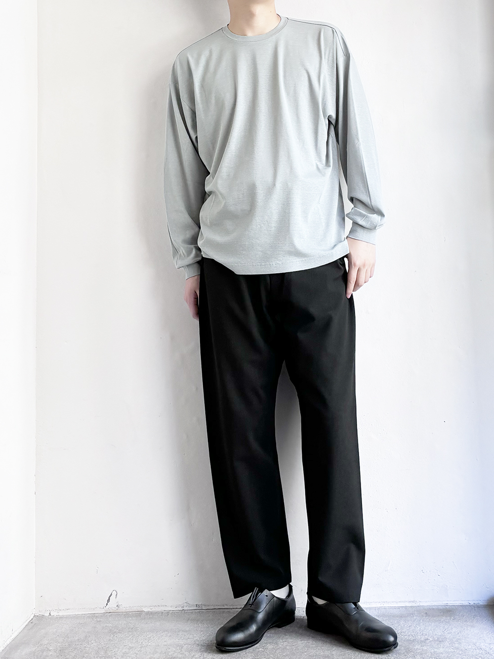 ゆったりとしたサイズ感ですがドレープ性のある生地によりビッグシルエットではなくリラックスした印象です。