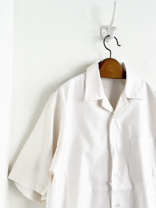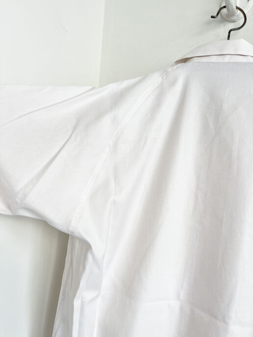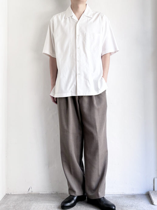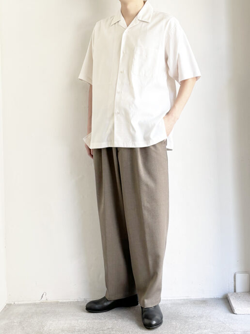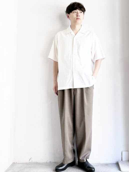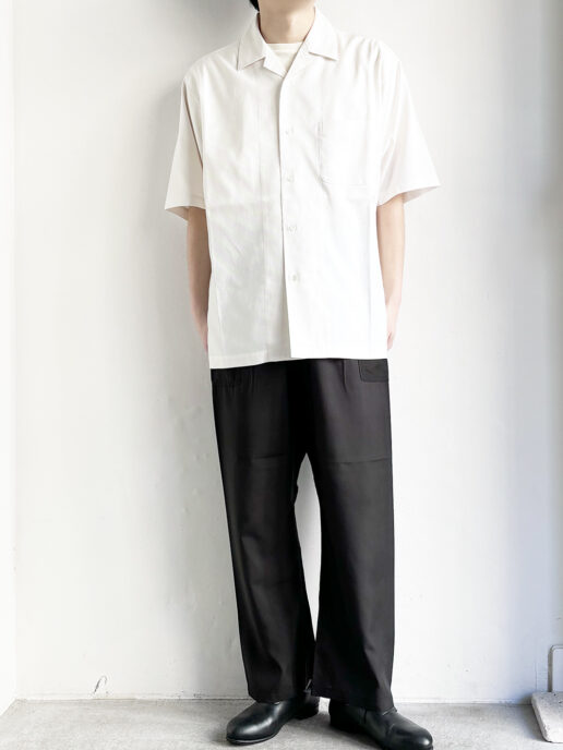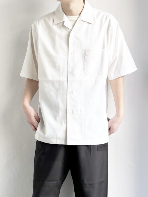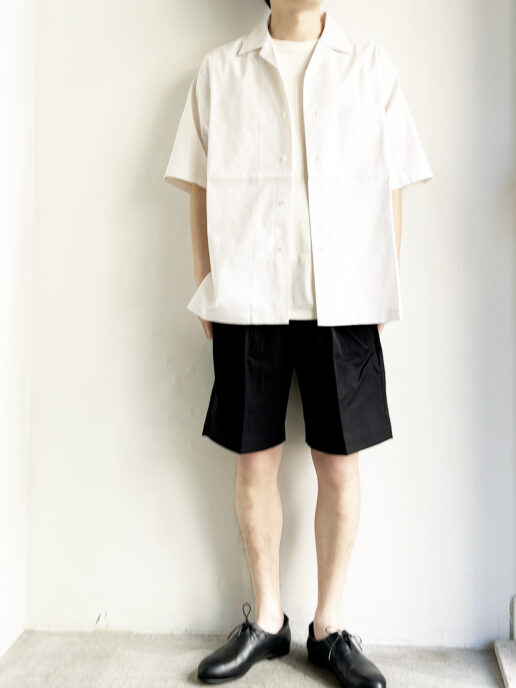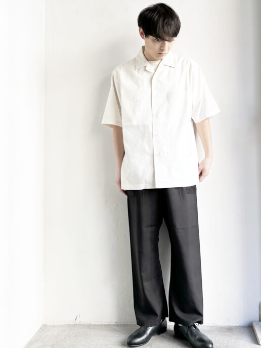 シンプルな筒状のハーフスリーブに、ベーシックな左胸ポケットのみを配したミニマルな構成。