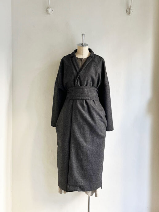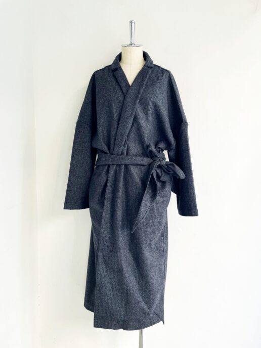 ローブのように羽織ってもベルトで締めてワンピースのようにもお使いいただけます。